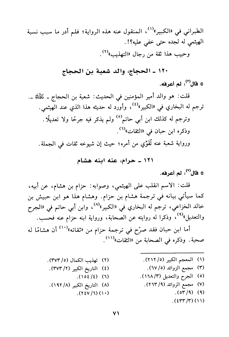 قلت: الاسم انقلب على الهيثمي، وصوابه: حزام بن هشام، عن أبيه، كما سيأتي بيانه في ترجمة هشام بن حزام. وهشام هذا هو ابن حبيش بن خالد الخزاعي، ترجم له البخاري في "الكبير" (¬8)، وابن أبي حاتم في "الجرح والتعديل" (¬9)، وذكرا له روايته عن الصحابة، ورواية ابنه حزام عنه فحسب.