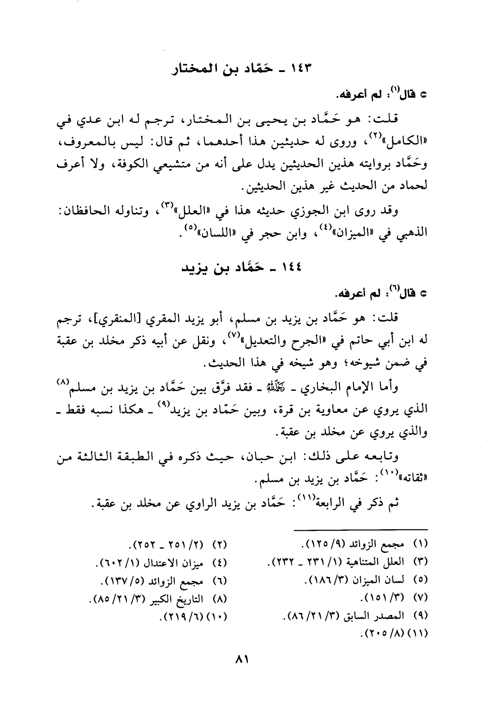 وتابعه على ذلك: ابن حبان، حيث ذكره في الطبقة الثالثة من "ثقاته" (¬10): حَمَّاد بن يزيد بن مسلم.