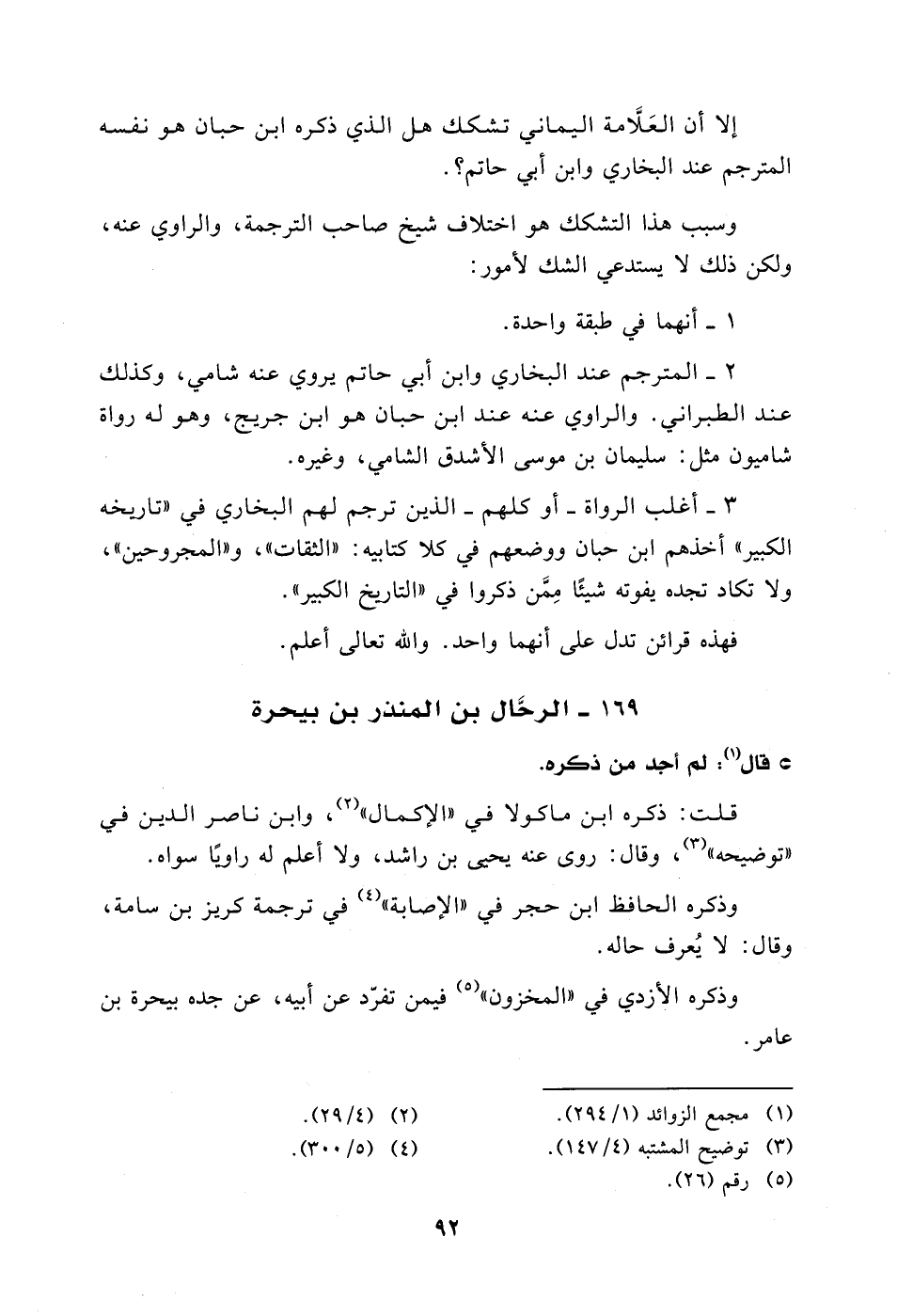 إلا أن العَلَّامة اليماني تشكك هل الذي ذكره ابن حبان هو نفسه المترجم عند البخاري وابن أبي حاتم؟.