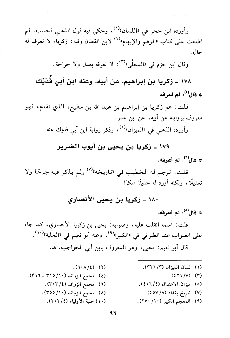 وأورده ابن حجر في "اللسان" (¬1)، وحكى فيه قول الذهبي فحسب. ثم اطلعت على كتاب "الوهم والإيهام" (¬2) لابن القطان وفيه: زكرياء لا تعرف له حال.