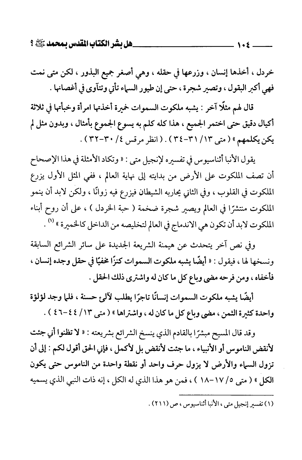 (¬1) تفسير إنجيل متى، الأنبا أثناسيوس، ص (211).