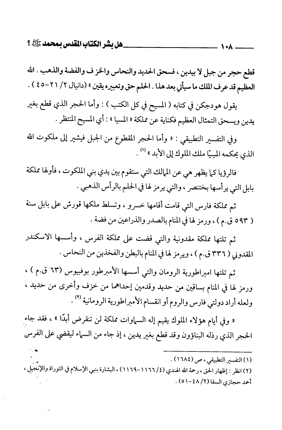 (¬2) انظر: إظهار الحق، رحمة الله الهندي (4/ 1166 - 1169)، البشارة بنبي الإسلام في التوراة والإنجيل، أحمد حجازي السقا (2/ 48 - 51).