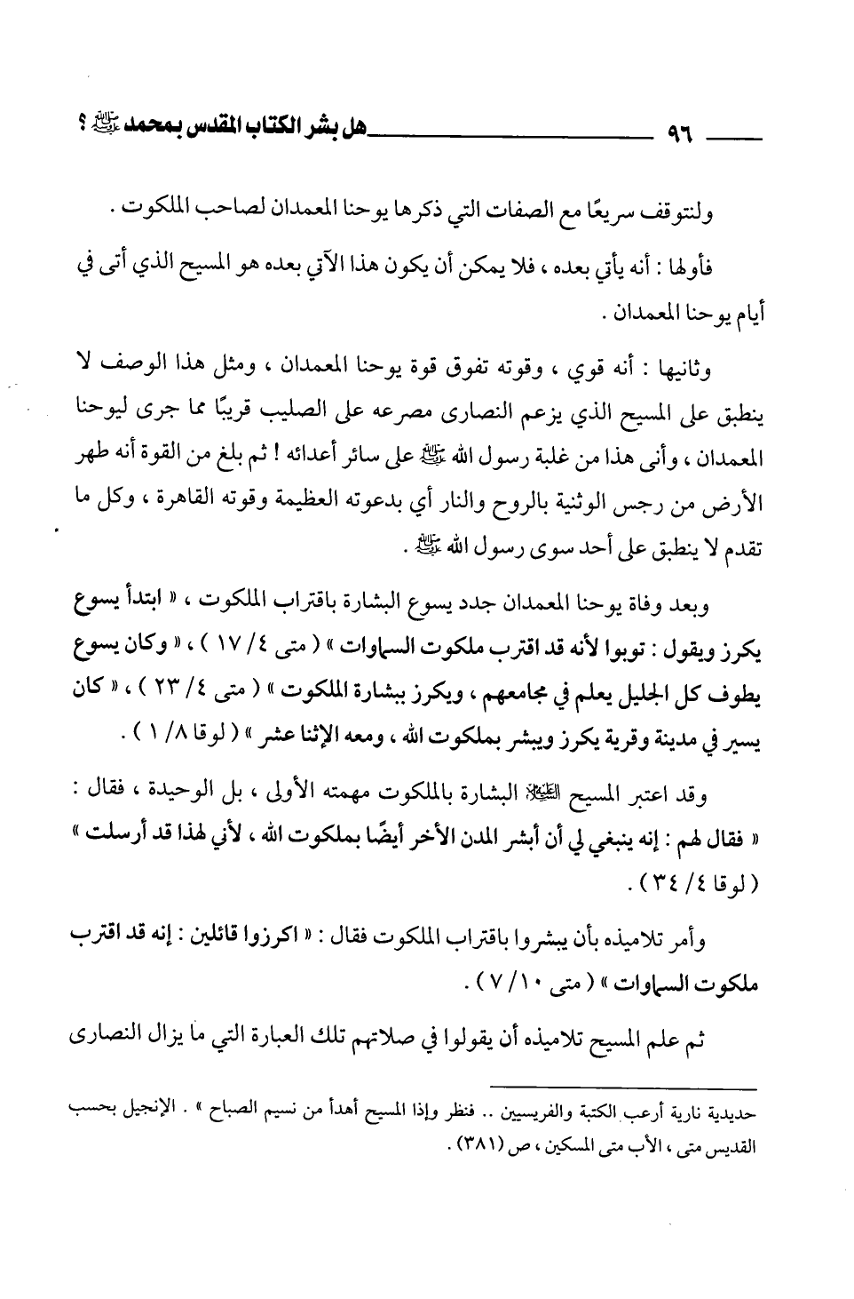 كتاب هل بشر الكتاب المقدس بمحمد صلى الله عليه وسلم