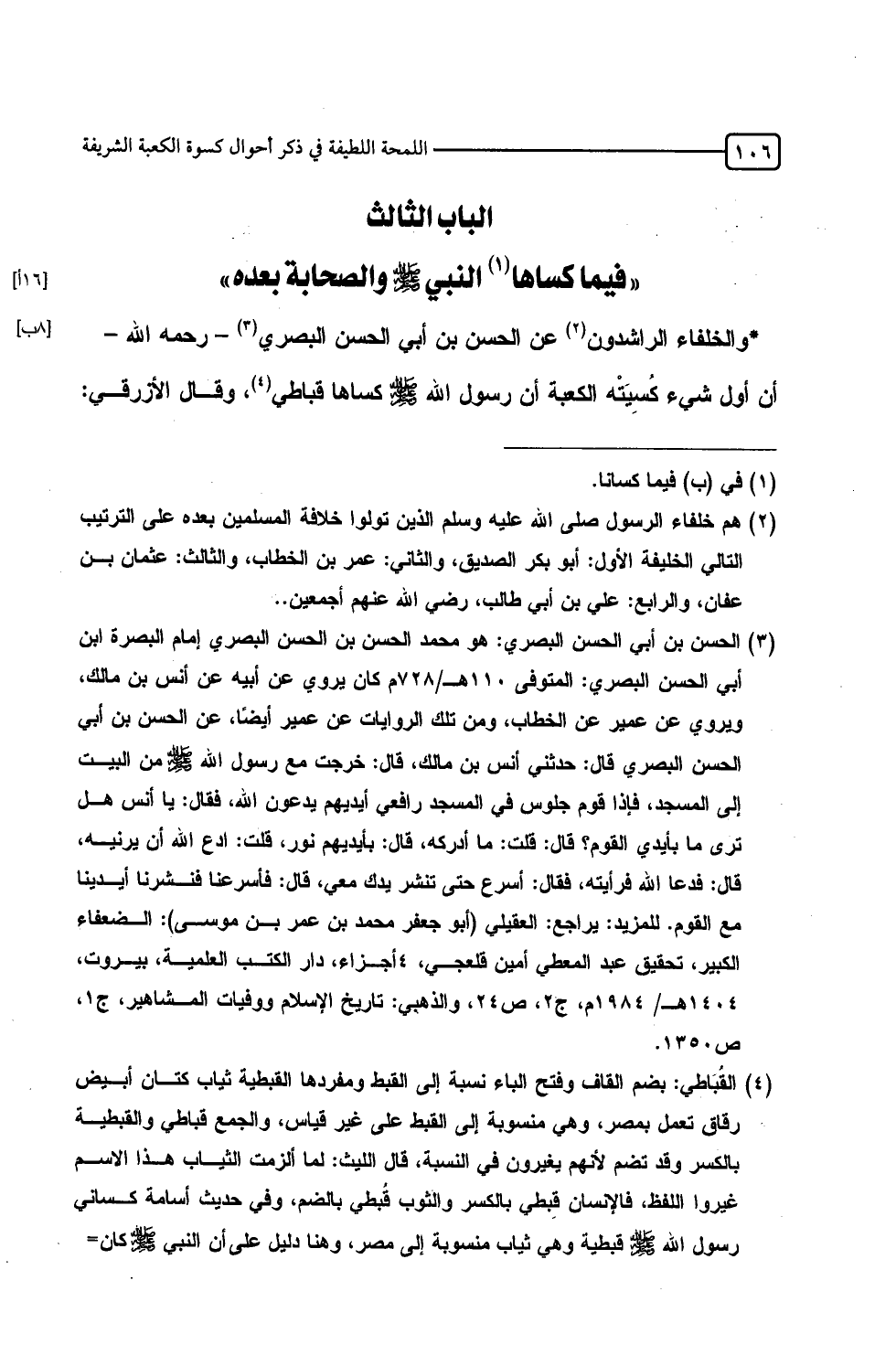 الباب الثالث: ((فيما كساها النبي صلى الله عليه وسلم والصحابة بعده والخلفاء الراشدون))