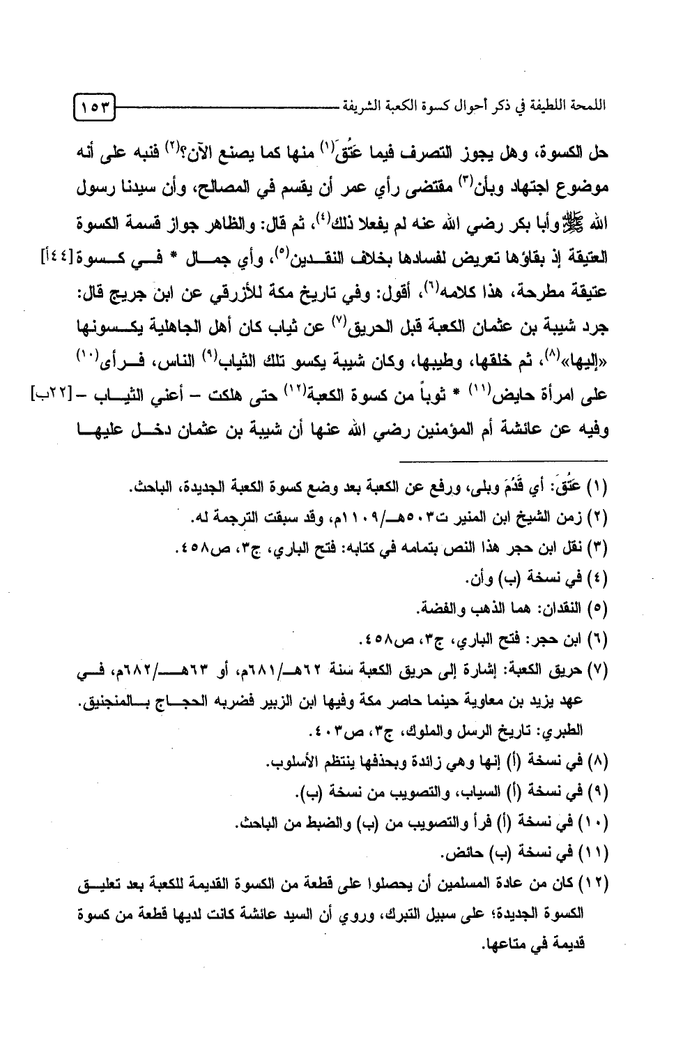 كتاب اللمحة اللطيفة في ذكر أحوال كسوة الكعبة الشريفة