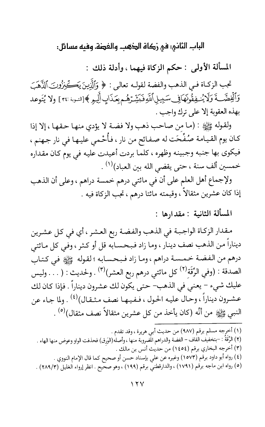 الباب الثاني: في زكاة الذهب والفضة، وفيه مسائل: