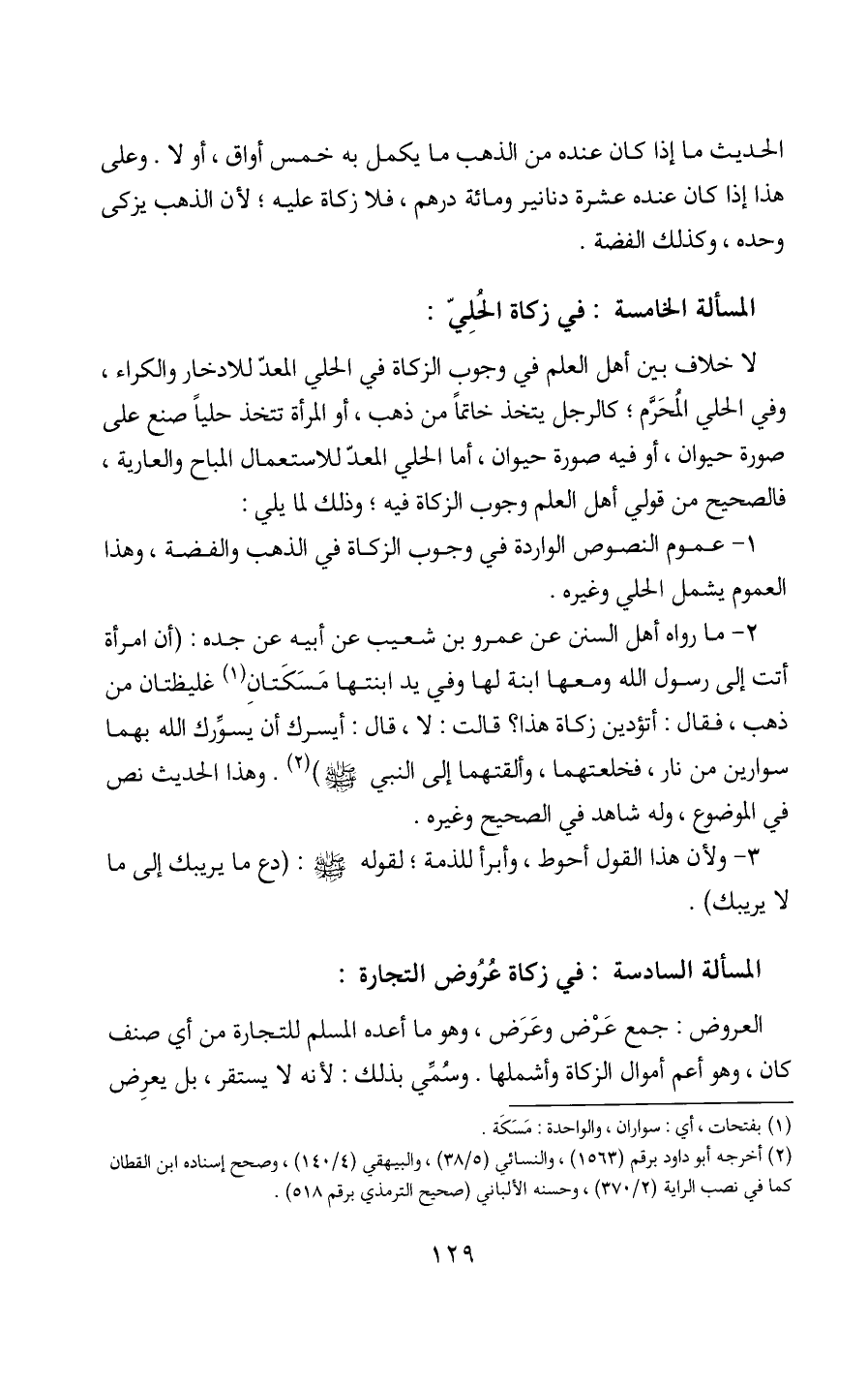 (2) أخرجه أبو داود برقم (1563)، والنسائي (5/ 38)، والبيهقي (4/ 140)، وصحح إسناده ابن القطان كما في نصب الراية (2/ 370)، وحسنه الألباني (صحيح الترمذي برقم 518).