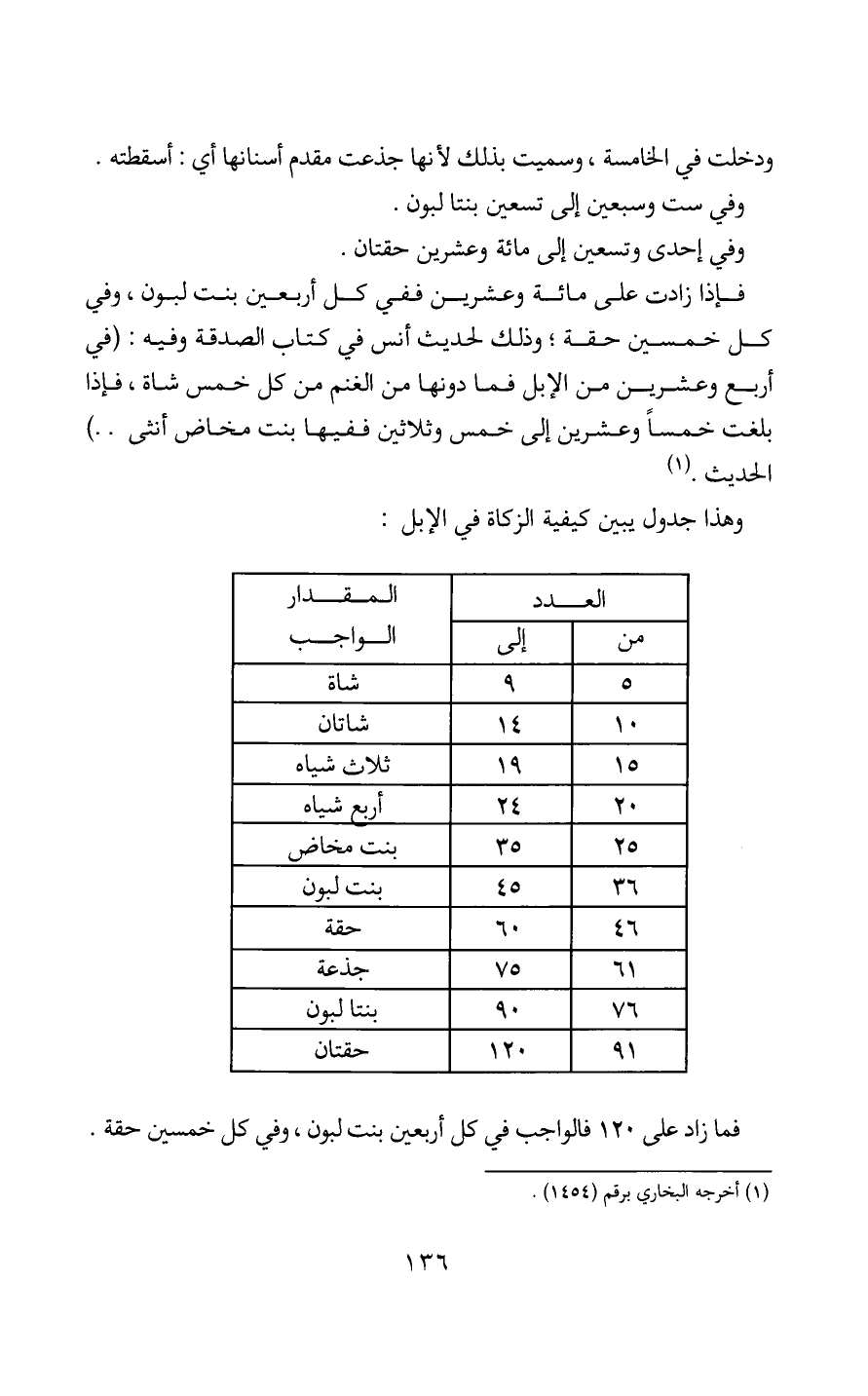 وهذا جدول يبين كيفية الزكاة في الإبل: