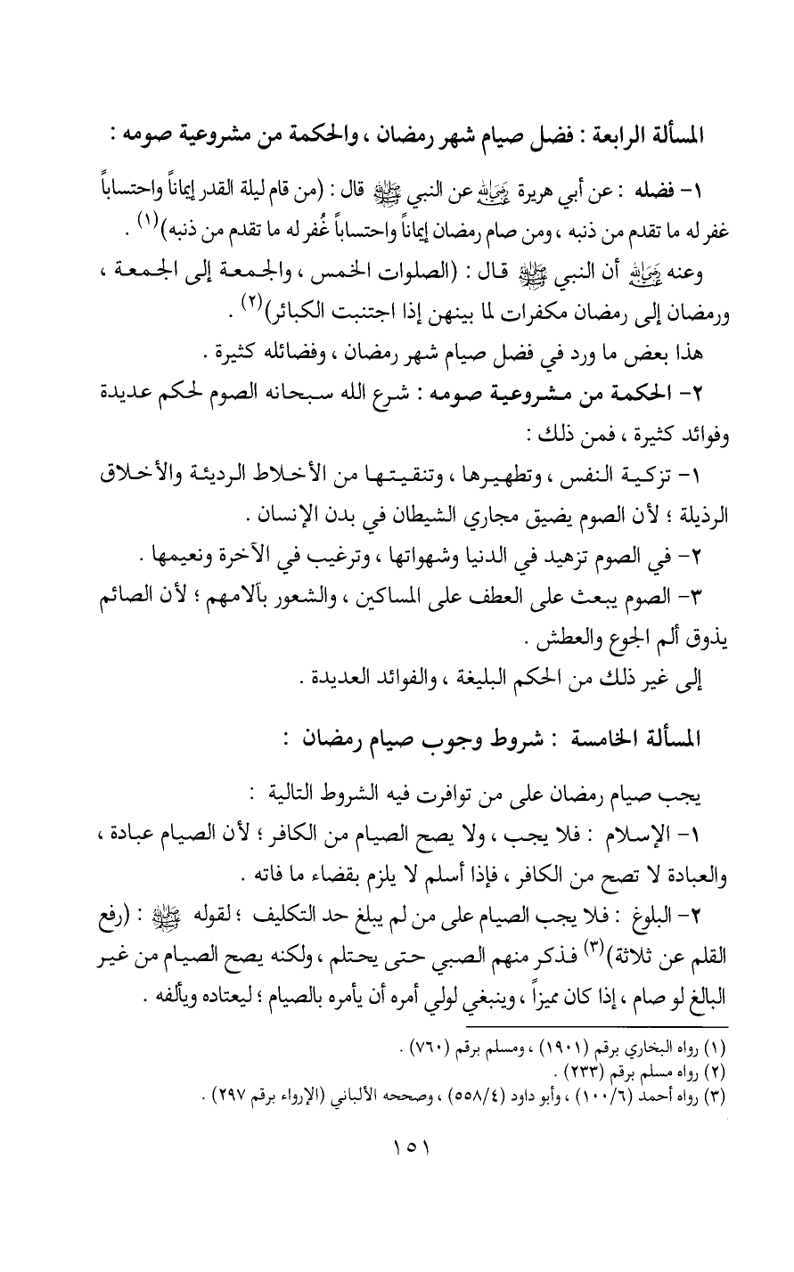 المسألة الخامسة: شروط وجوب صيام رمضان: