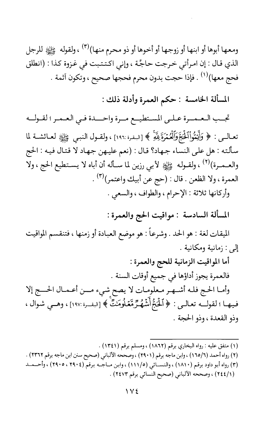 (3) رواه أبو داود برقم (1810)، والنسائي (5/ 111)، وابن ماجه برقم (2904، 2905)، وأحمد (1/ 244)، وصححه الألباني (صحيح النسائي برقم 2473).