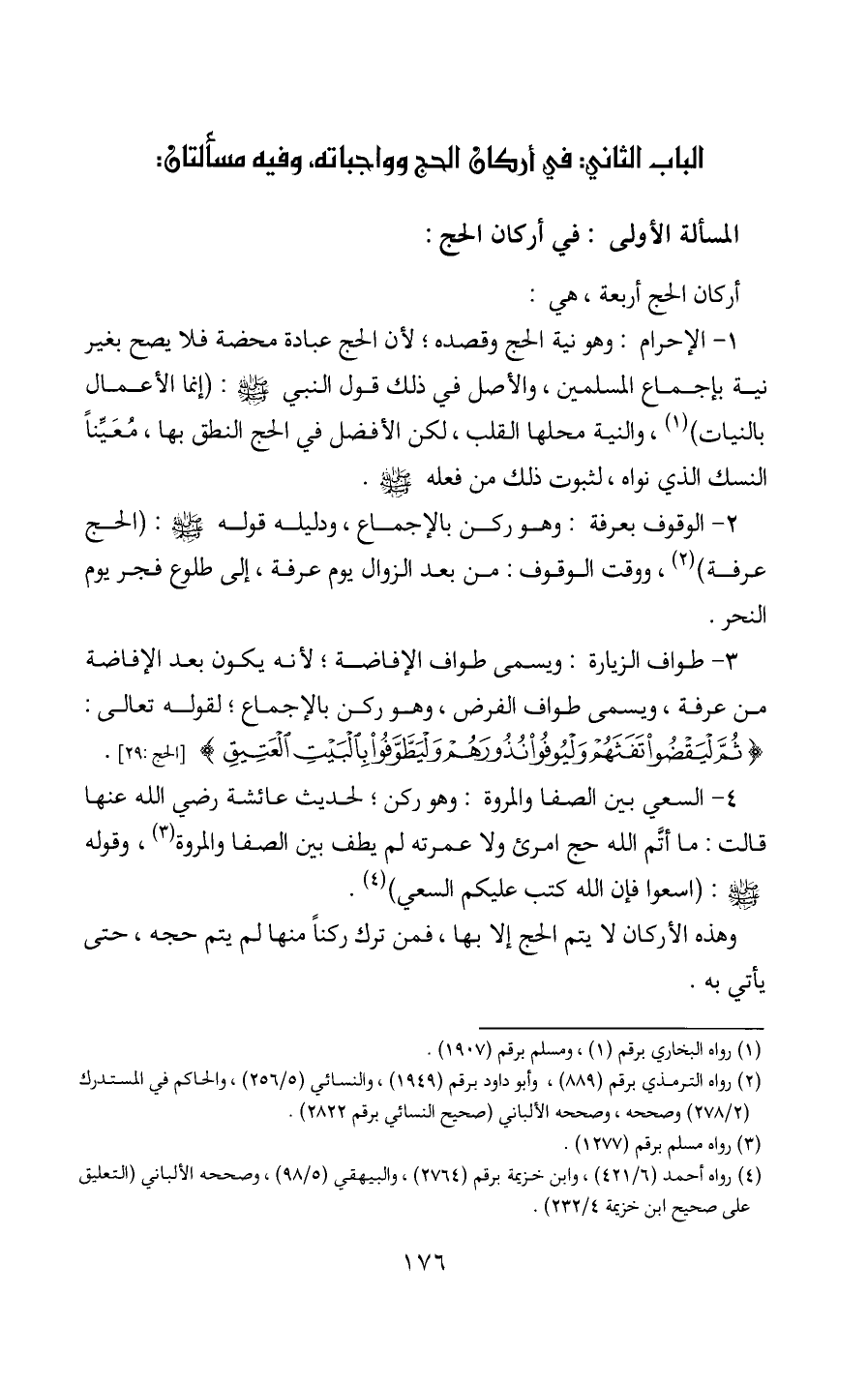 الباب الثاني: في أركان، الحج وواجباته، وفيه مسألتان:
