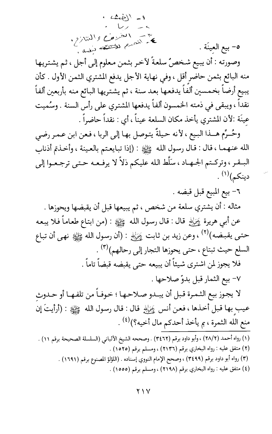 7 - بيع الثمار قبل بدوّ صلاحها.