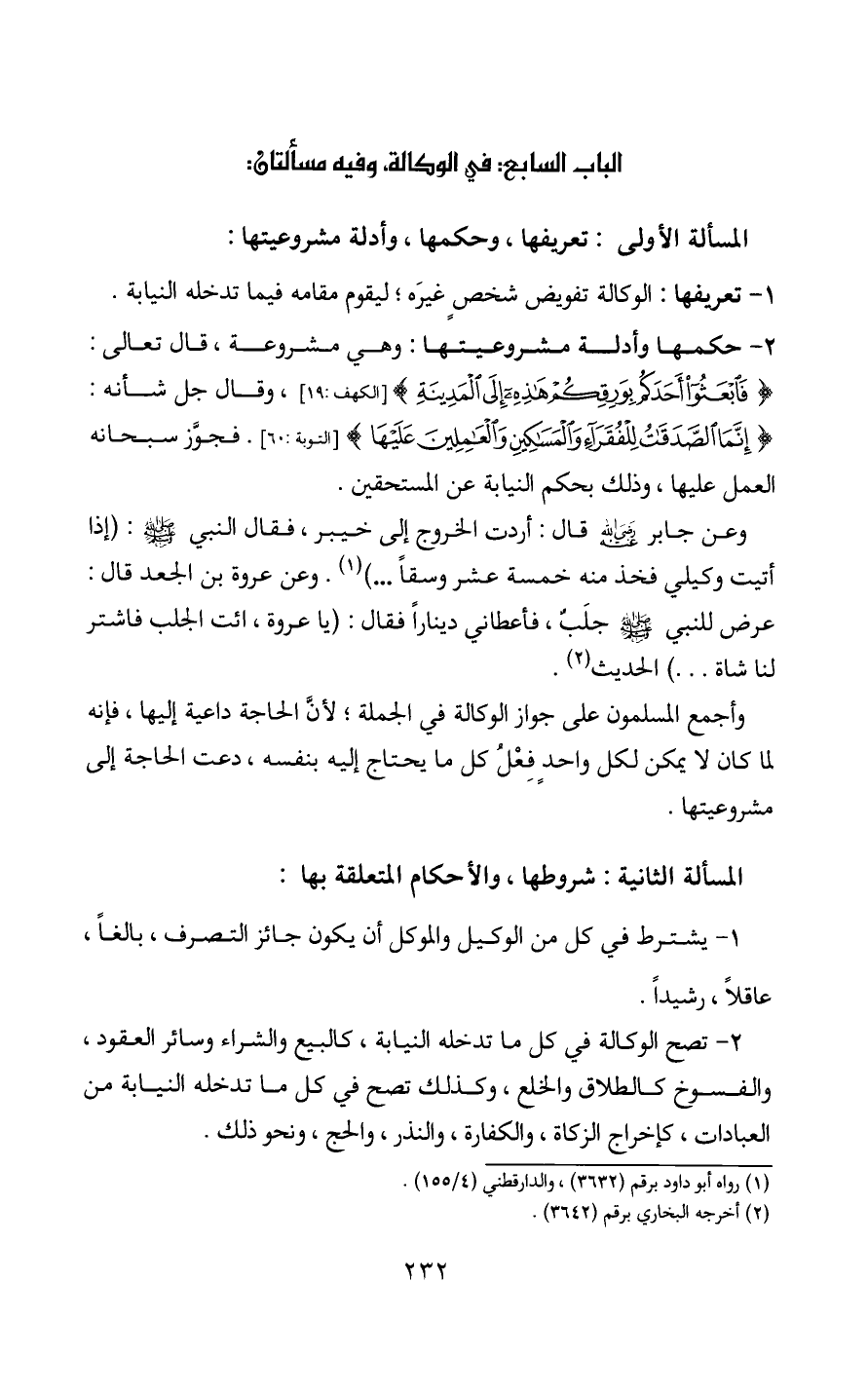 الباب السابع: في الوكالة، وفيه مسألتان: