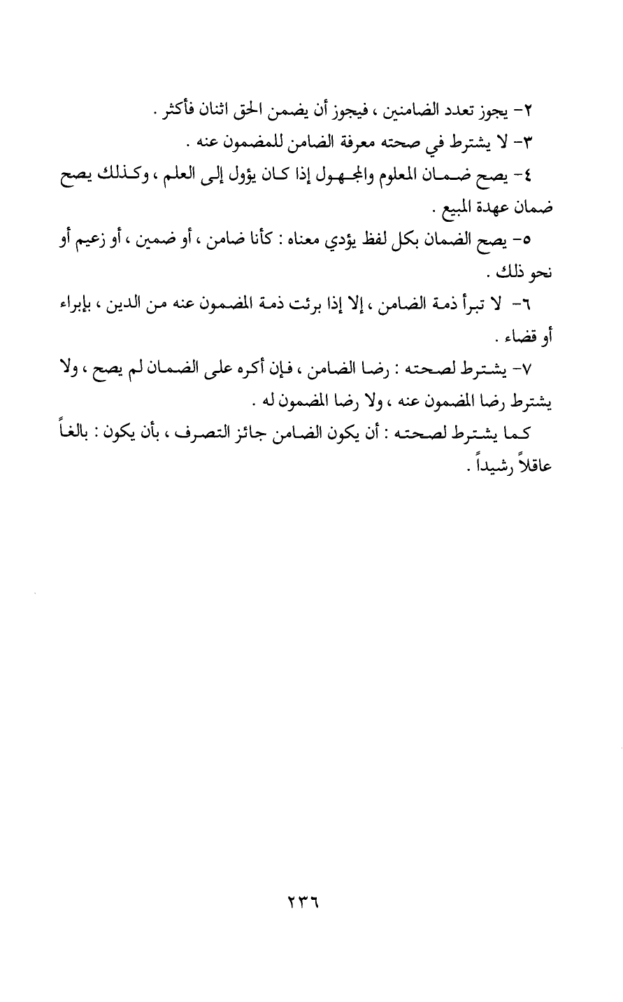 4 - يصح ضمان المعلوم والمجهول إذا كان يؤول إلى العلم، وكذلك يصح ضمان عهدة المبيع.