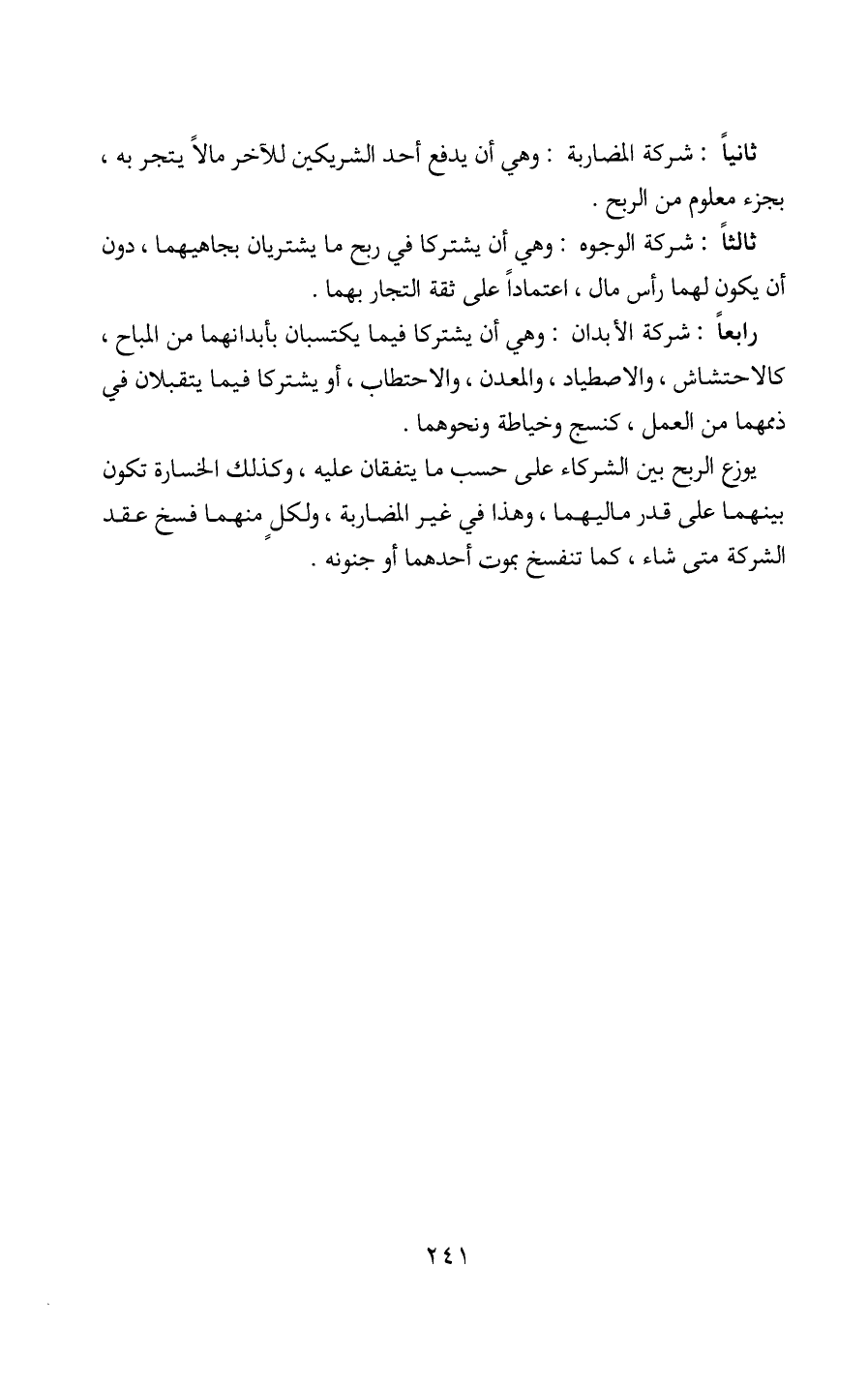 رابعاً: شركة الأبدان: وهي أن يشتركا فيما يكتسبان بأبدانهما من المباح، كالاحتشاش، والاصطياد، والمعدن، والاحتطاب، أو يشتركا فيما يتقبلان في ذممهما من العمل، كنسج وخياطة ونحوهما.