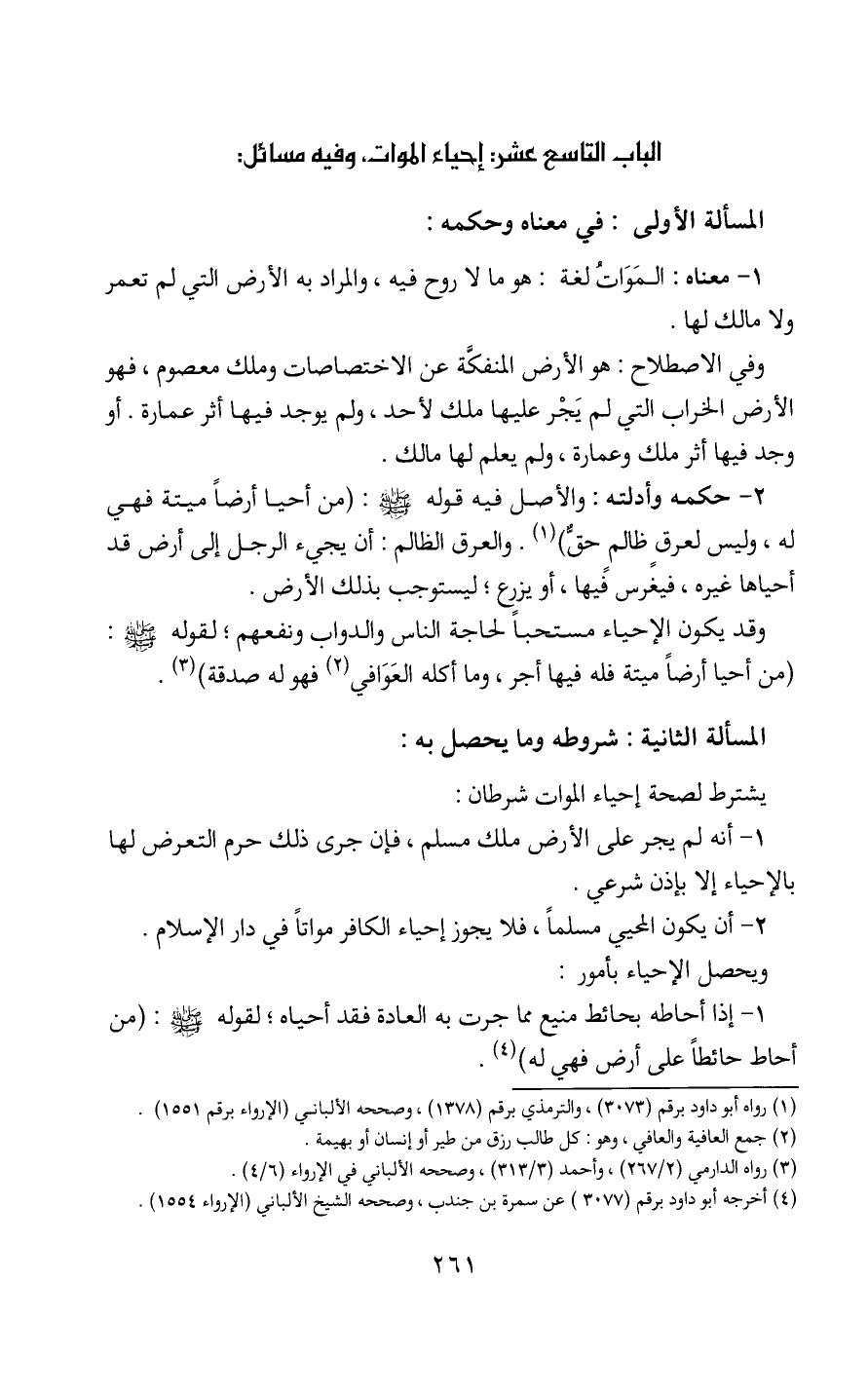 الباب التاسع عشر: إحياء الموات، وفيه مسائل:
