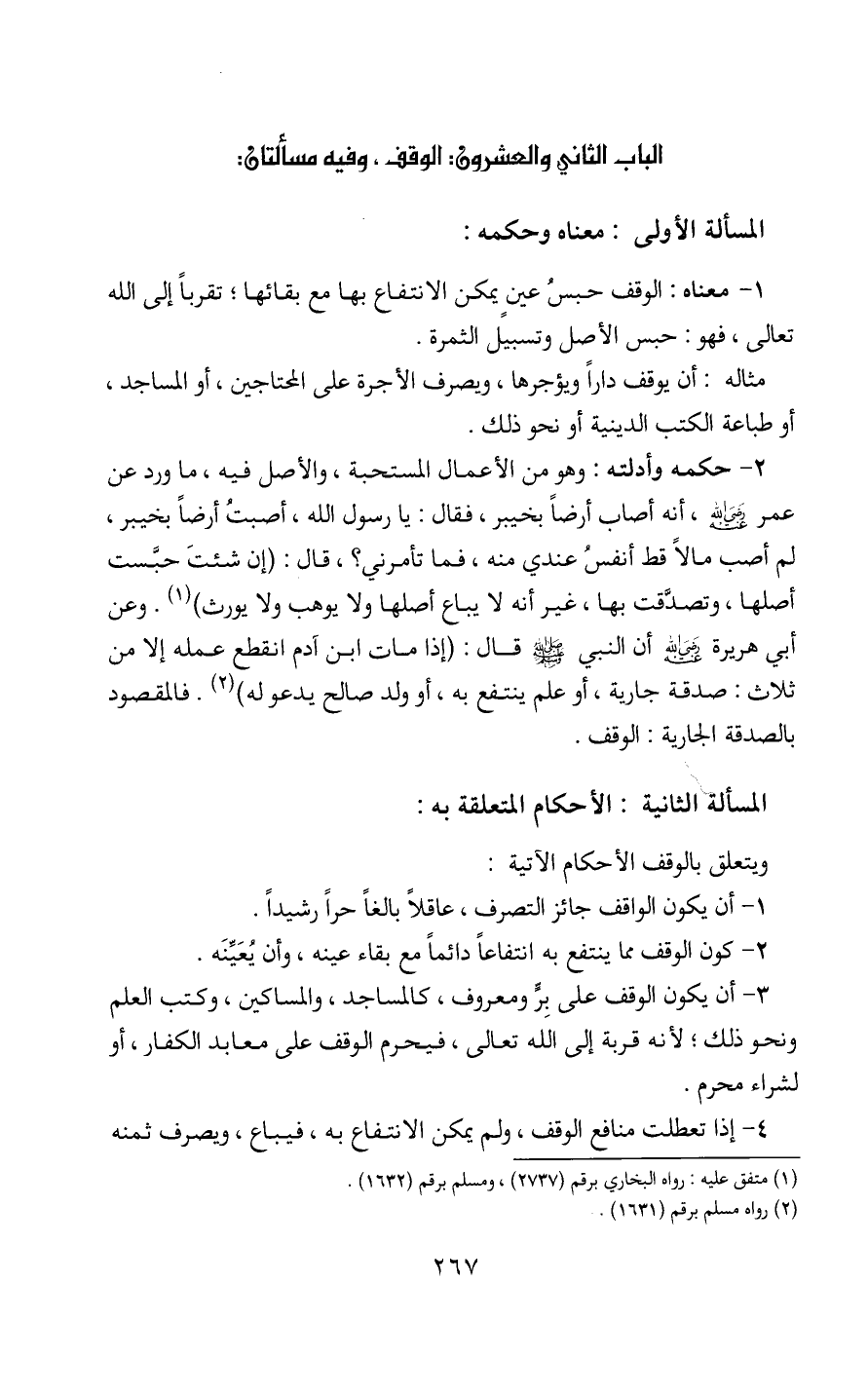 الباب الثاني والعشرون: الوقف، وفيه مسألتان: