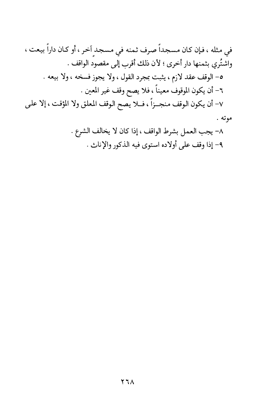 8 - يجب العمل بشرط الواقف، إذا كان لا يخالف الشرع.