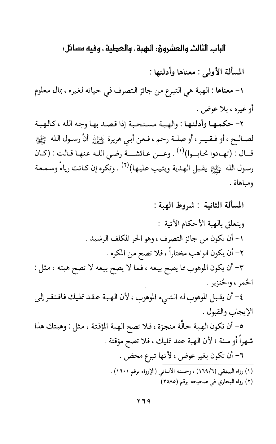 الباب الثالث والعشرون: الهبة، والعطية، وفيه مسائل: