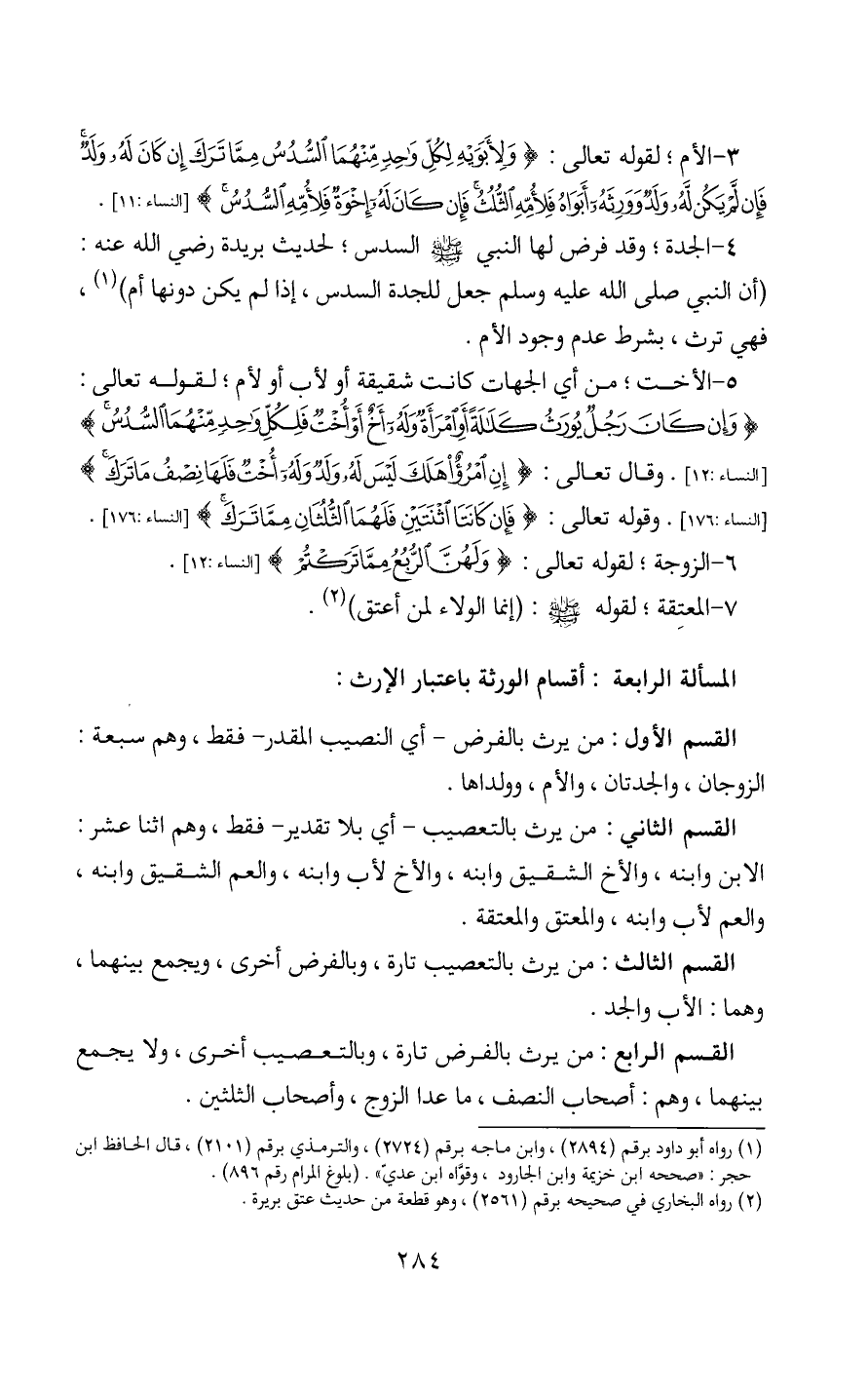 المسألة الرابعة: أقسام الورثة باعتبار الإرث: