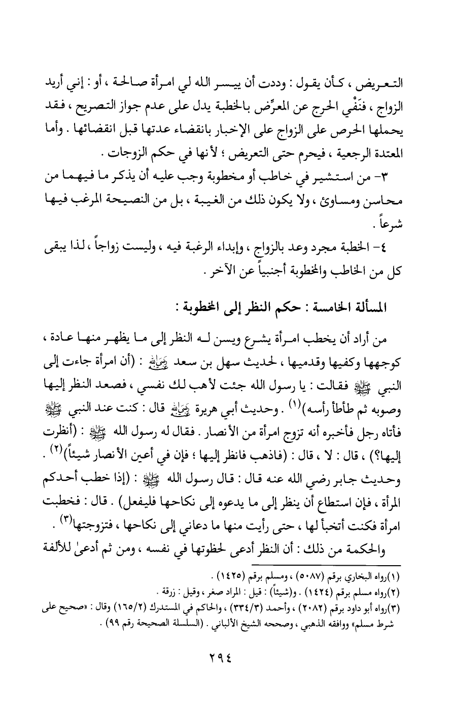 المسألة الخامسة: حكم النظر إلى المخطوبة: