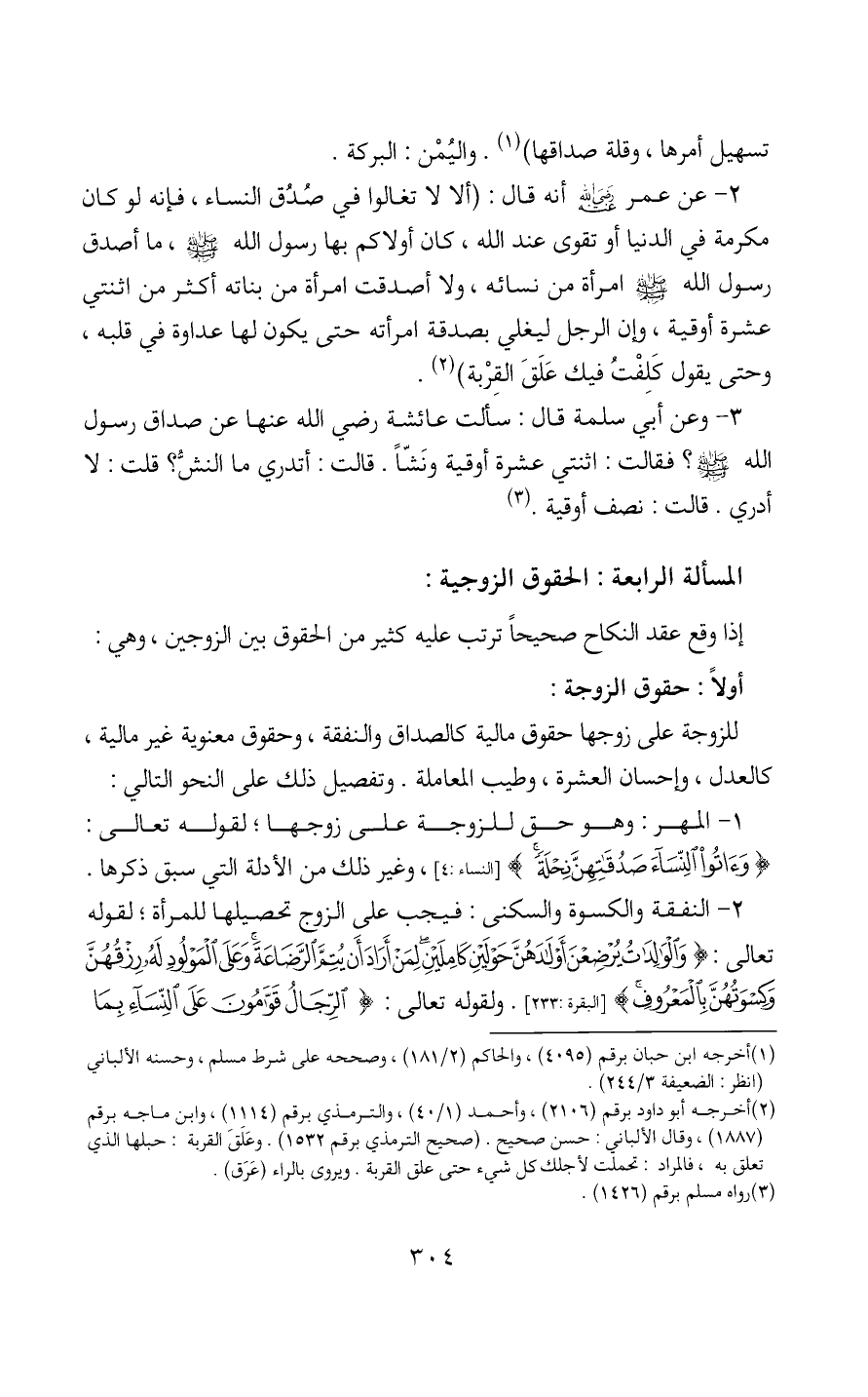 المسألة الرابعة: الحقوق الزوجية: