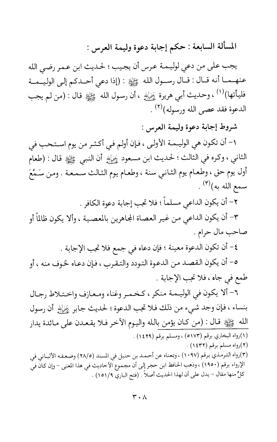 شروط إجابة دعوة وليمة العرس: