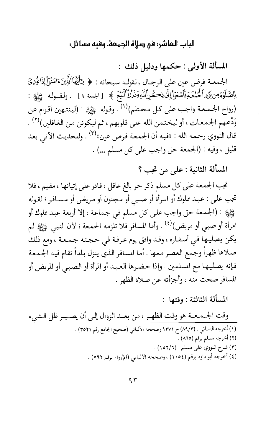 الباب العاشر: في صلاة الجمعة، وفيه مسائل:
