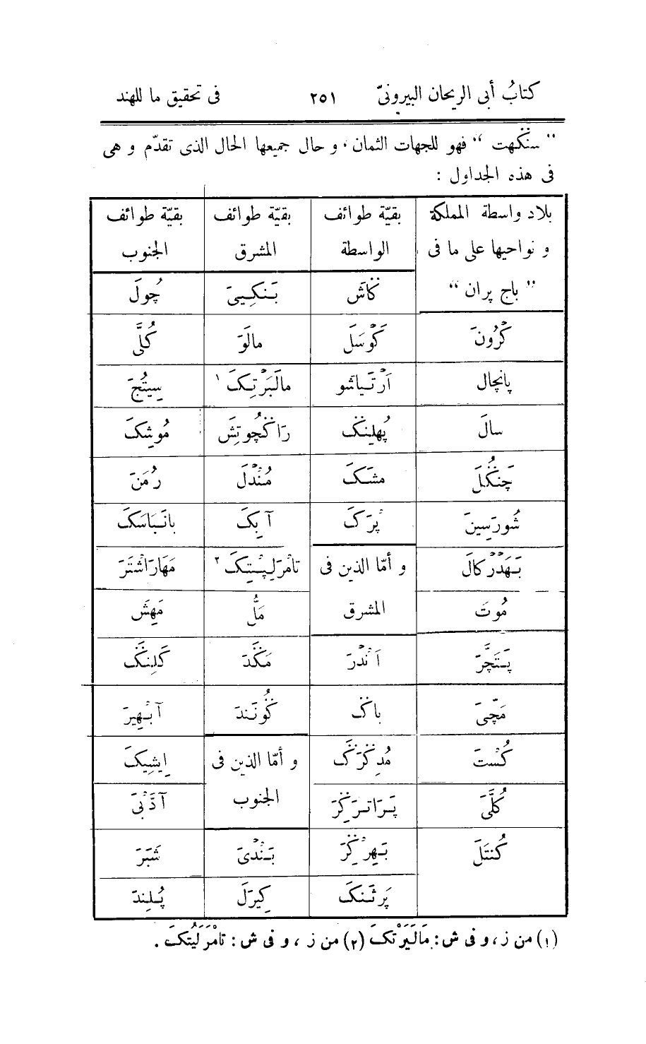 وليس بمأخوذ من نور وظلام ولا من ظهور واكتتام وإنّما هو من موجب الطبيعة في المطبوعات بالحركة والسكون في النهار والليل، ومقدار يوم براهم من سنينا 8640000000 نصفه نهار يكون فيه الأثير «1» بما فيه متحرّكا والأرض عامرة وتصاريف الكون والفساد على وجهها مستمرّة ونصفه ليل يكون الأمر فيه بخلاف ما في النهار والأرض غير متغيّرة لسكون المغيّرات وبطلان المحرّكات على مثال استراحة المطبوع بالليل وفي الشتاء وتجمّعه مستعدا للكون الجديد بالنهار وفي الصيف. وكلّ واحد من نهار براهم وليله «كلب» وهو الذي يسمّيه اصحابنا «سنى السند هند» وبعد هذا اليوم «بورش هوراتر» أي يوم النفس الكلّيّة ويسمّى «مها كلب» أي الكلب الأعظم فأمّا هم فلا يضعونه إلّا تقديرا للمدّة بما يقوم مقام الوقت من غير ان يفصّلوه بنهار أو ليل، ويتخيّل منه انّ نهاره هو مدّة تعلّق النفس بالهيولي وليله مدّة انفصالهما وجمام الأرواح وأنّ الحال الموجب لها التعلّق والاتّصال عائد عند تمام هذا اليوم، وفي كتاب «بشن دهرم» : أنّ عمر «براهم» هو نهار «بورش» ومثله ليله، وقد اتّفقوا في عمر «براهم» على مائة سنة من سنيه، وتركيب السنين عندهم من تضاعيف الثلاث مائة والستّين، وقد تقدّم مقدار يوم براهم، فسنته بسنينا 3110400000000 ومائة سنة له بسنينا مثل ذلك بزيادة صفرين حتى يكون جملتها عشرة اصفار وذلك نهار «بورش» ويومه ضعف ذلك وهو 622080000000000، وفي «بلس سدّهاند» : انّ عمر براهم هو نهار بورش لكنّه ذكر ان نهار بورش هو «برارد كلبي» ، وقد قالوا أيضا: انّ برارد كلبي هو نهار «كأ» اي النقطة عنوا بها العلّة الأولى العالية على جميع الموجودات، وذلك «كلب» موضوع في المرتبة الثامنة عشر من مراتب الحساب، فإنّ هذا