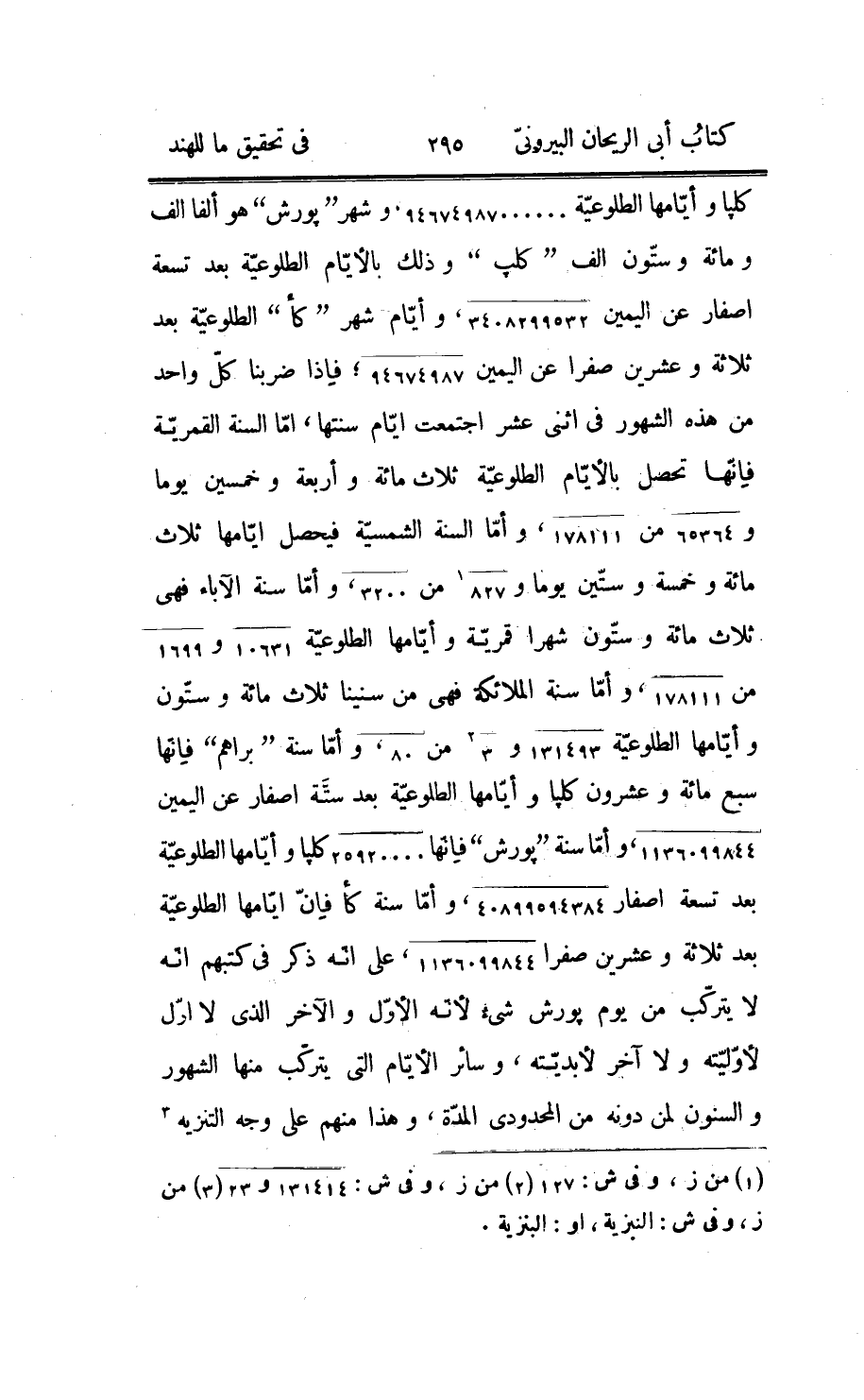 والاعتماد هاهنا على المنقول من «بشن پران» إذ كان عددها فيه وسمّاها ووصفها بأشياء أوجبت الركون فيه الى الترتيب وأعرضنا عن حكايتها لقلّة عائدتها، وفيه أنّ «ميتري» الملك وكان كشترا سأل «براشر» أبا «1» «بياس» عن المنّنترات الماضية والباقية فذكر ما عرف به كلّ «من» كما وضعناها نحن في الجدول، وزعم أنّ أولاد كلّ من هم الذين يملكون الأرض وسمّى من أوائلهم ما اثبتنا أساميهم، وزعم أنّ من كان في منّنتر» الثاني والثالث والرابع والخامس من أولاد «بريابرت» وكان زاهدا كثير التقرّب الى «بشن» فأكرم أولاده بهذه الرتبة.