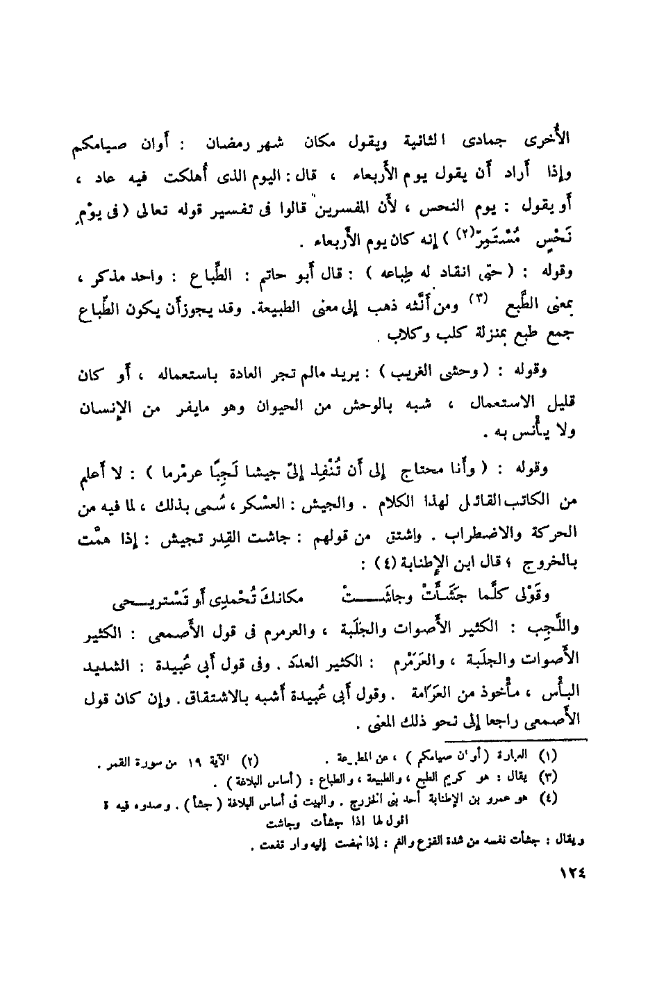الأخرى جمادي الثانية ويقول مكان شهر رمضان: أوان صيامكم وإذا أراد أن يقول يوم الأربعاء، قال: اليوم الذي أهلكت فيه عاد، أو يقول: يوم النحس، لأن المفسرين قالوا في تفسير قوله تعالى {فِي يَوْمِ نَحْسٍ مُّسْتَمِرٍّ} إنه كان يوم الأربعاء.