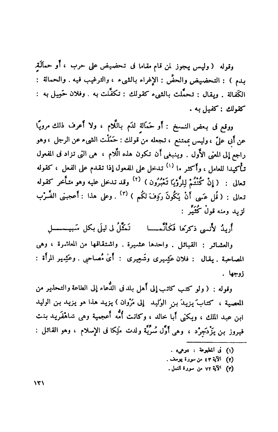 وقوله (وليس يجوز لمن قام مقاما في تحضيض على حرب، أو حمالة بدم): التحضيض والحض: الإغراء بالشيء، والترغيب فيه. والحمالة: الكفالة. ويقال: تحملت بالشيء كقولك: تكفلت به. وفلان حميل به: كقولك: كفيل به.