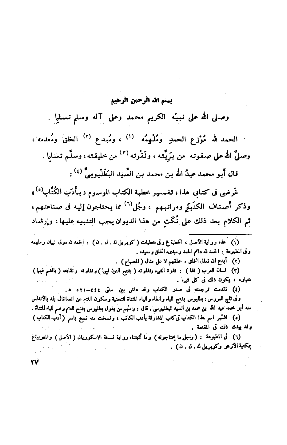 قال أبو محمد عبد الله بن محمد بن السيد البطليوسي: