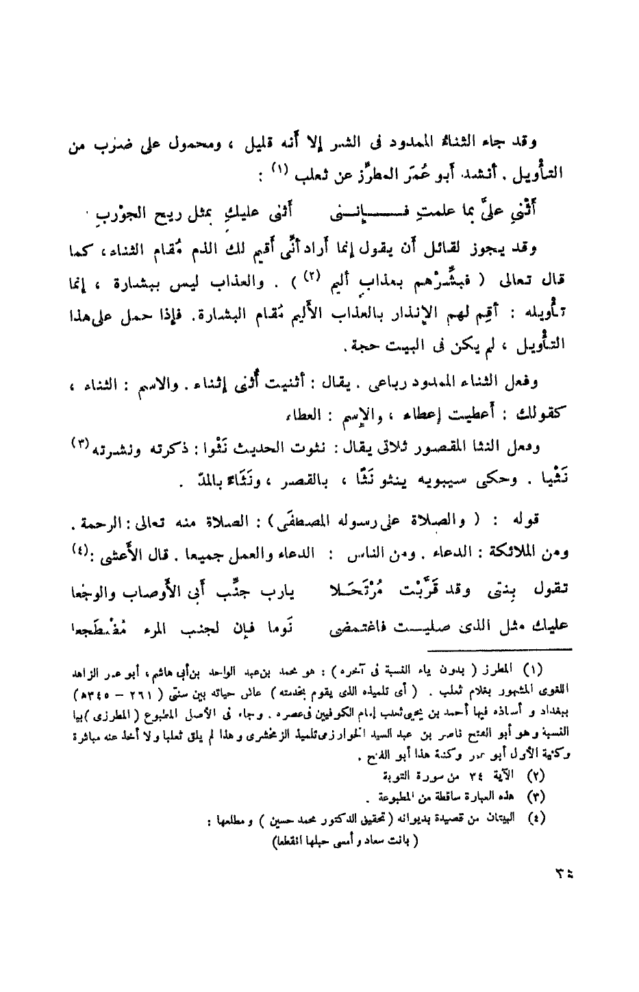وقد جاء الثناء الممدود في الشر إلا أنه قليل، ومحمول على ضرب من التأويل. أنشد أبو عمر المطرز عن ثعلب.
