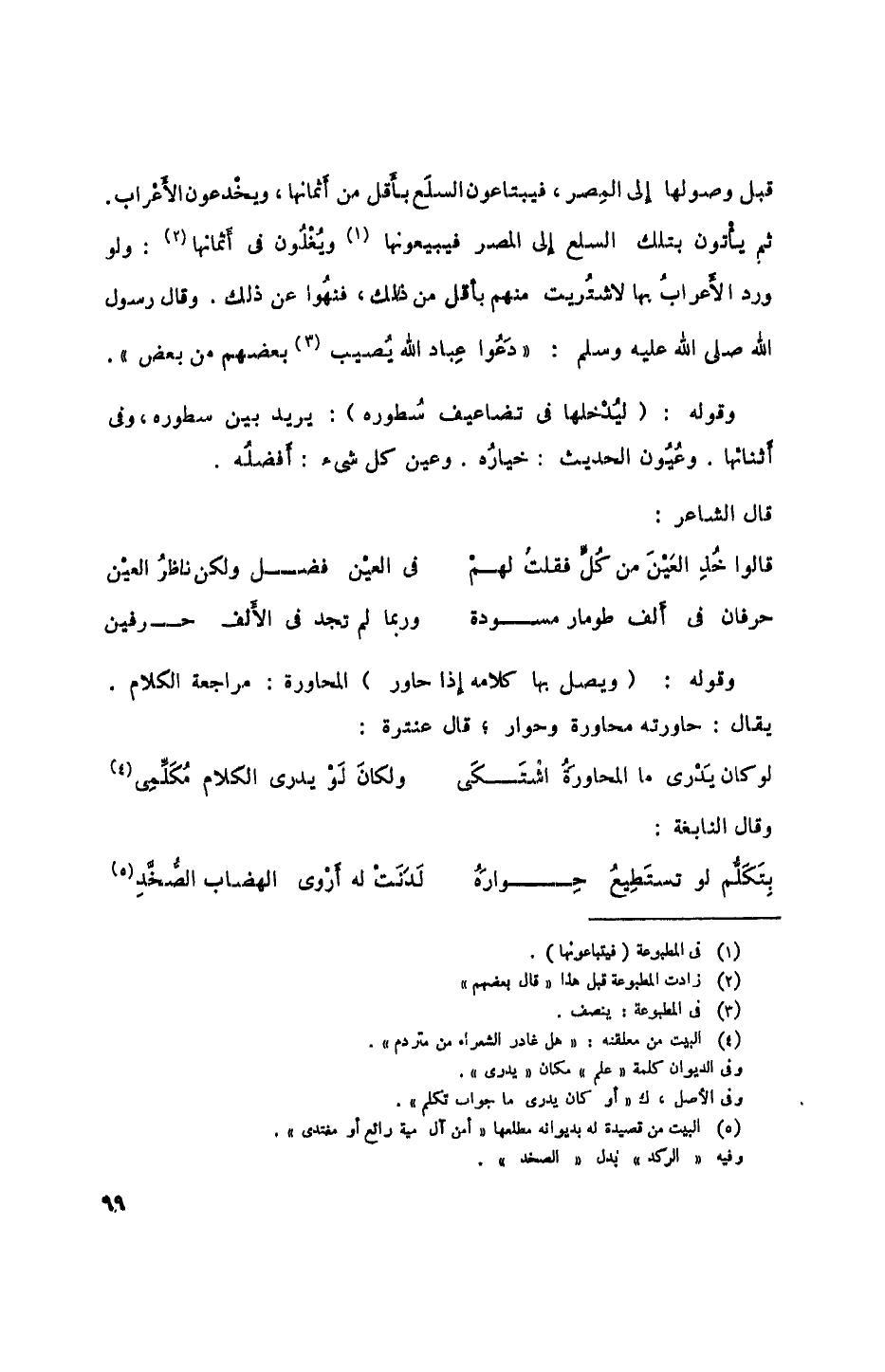 وقوله: (ويصل بها كلامه إذا حاور) المحاورة: مراجعة الكلام. يقال: حاورته محاورة وحوار، قال عنترة:
