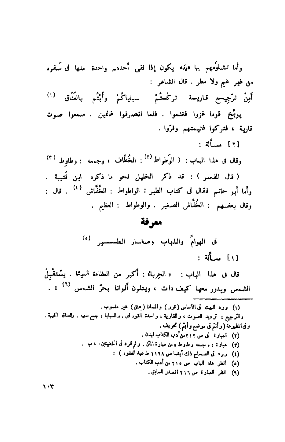 وقال في هذا الباب: (الوطواط: الخطاف، وجمعه: وطاوط.