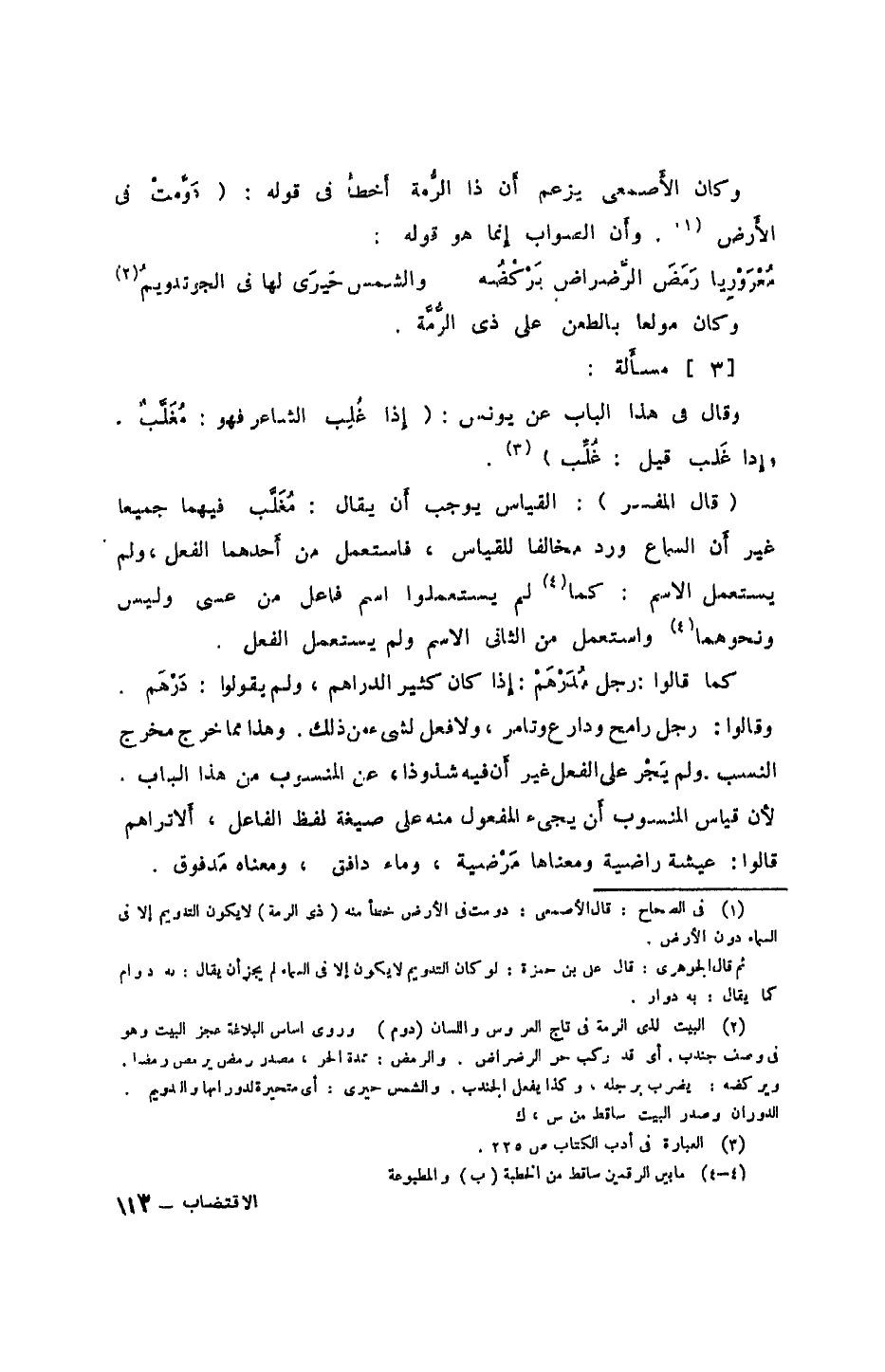 وكان الأصمعي يزعم أن ذا الرمة أخطأ في قوله: (مؤمت في الأرض" وأن الصواب إنما هو قول: