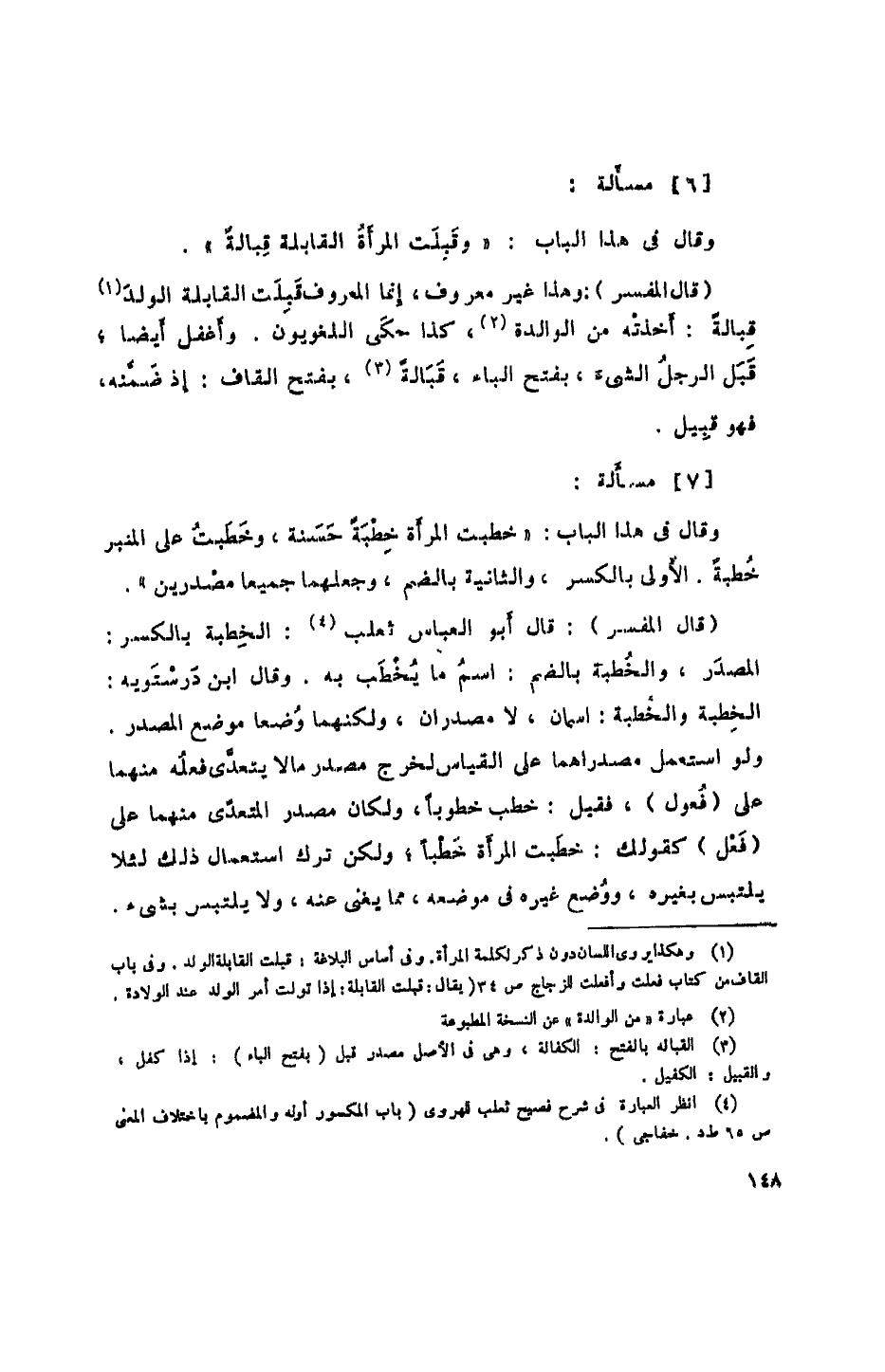 (قال المفسر): وهذا غير معروف، إنما المعروف قبلت القابلة الولد قبالة: أخذته من الوالدة، كذا حكى اللغويون. وأغفل أيضاً، قبل الرجل الشيء، بفتح الباء، قبالة، بفتح القاف: إذ ضمنه، فهو قبيل.