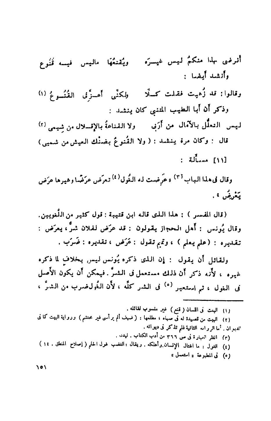 (قال المفسر): هذا الذي قاله ابن قتيبة: قول كثير من اللويين. وقال يونس: أهل الحجاز يقولون: قد عرض لفلان شر، يعرض: تقديره: (علم يعلم)، وتميم تقول: عرض، تقديره: ضرب.