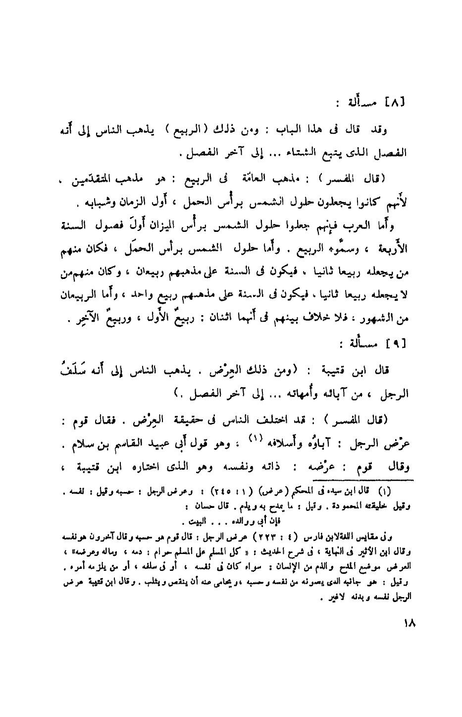 وقد قال في هذا الباب: ومن ذلك (الربيع) يذهب الناس إلى أنه الفصل الذي يتبع الشتاء ... إلى آخر الفصل.