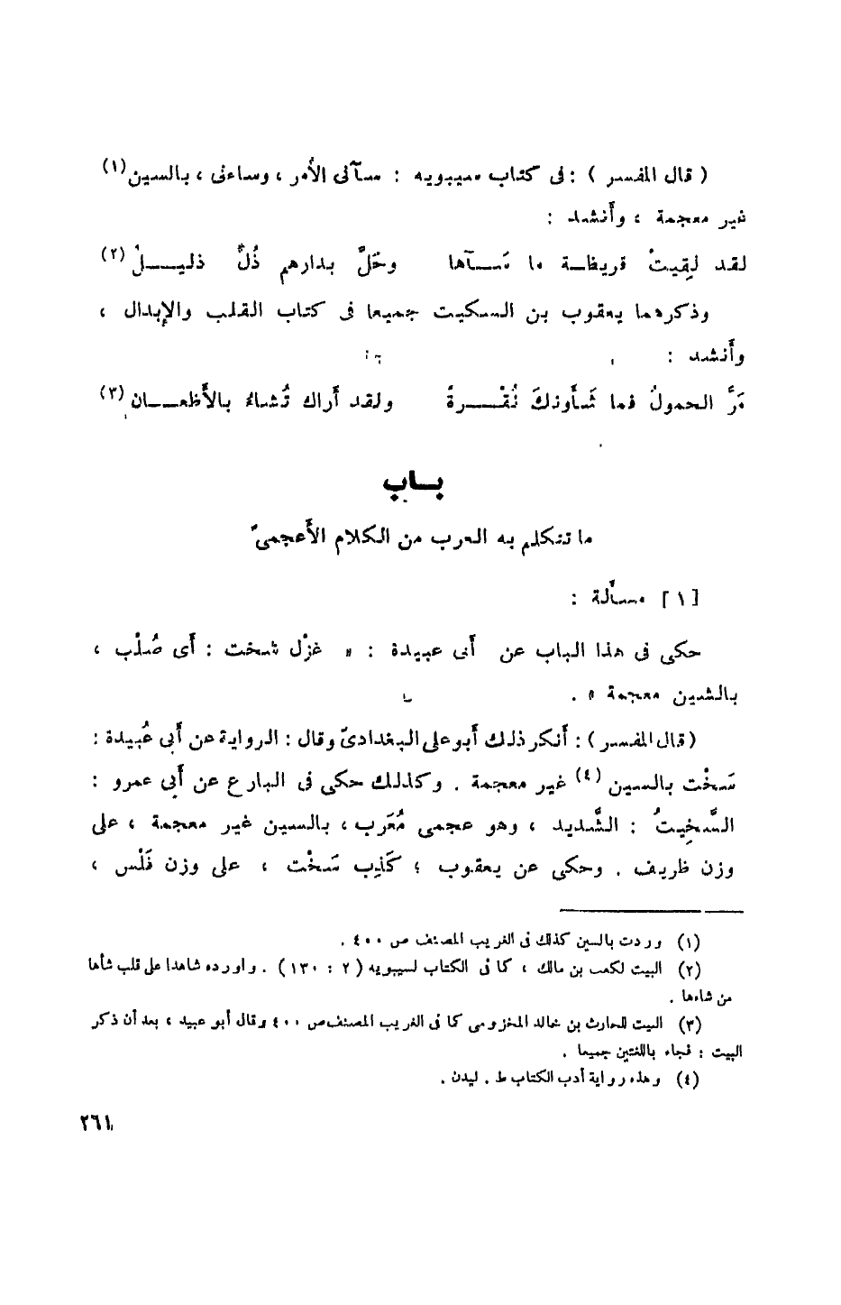 (قال المفسر): في كتاب سيبويه: سآني الأمر، وساءني، بالسين غير معجمة، وأنشد: