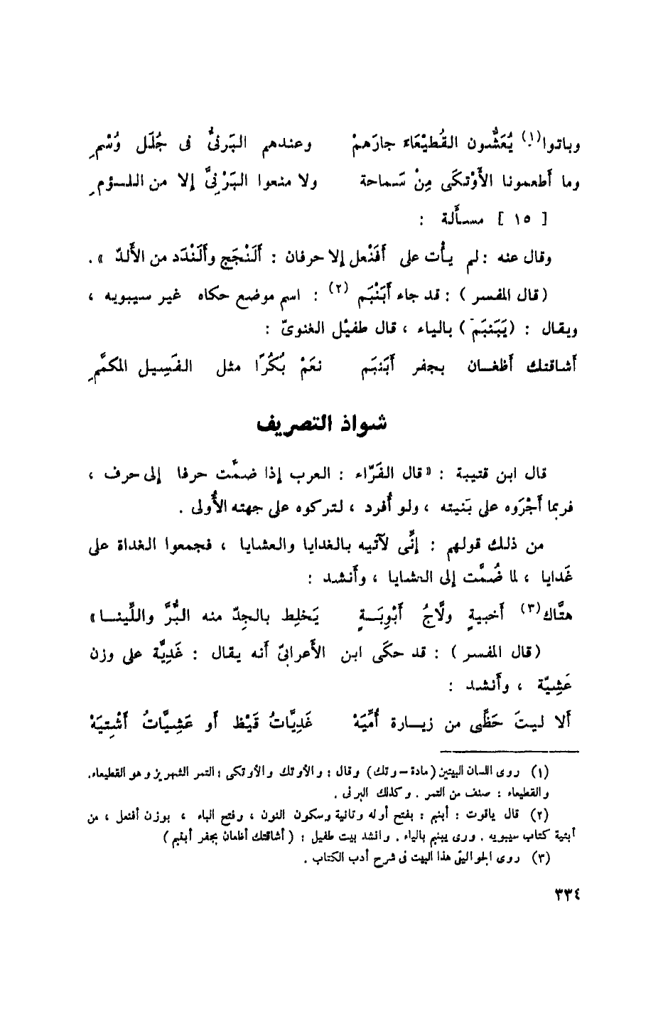 وقال عنه: لم يأت على أفنعل غلا حرفان: ألنجج وألندد من الألد".
