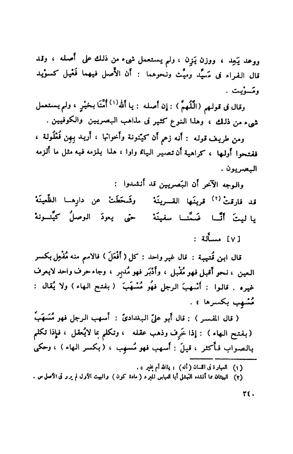 ومن طريف قوله: أنه زعم أن كينونة وأخواتها، أريد بهن فعلولة، ففتحوا أولها، راهية أن تصير الياء واوا، هذا يلزمه فيه مثل ما ألزمه البصريون.