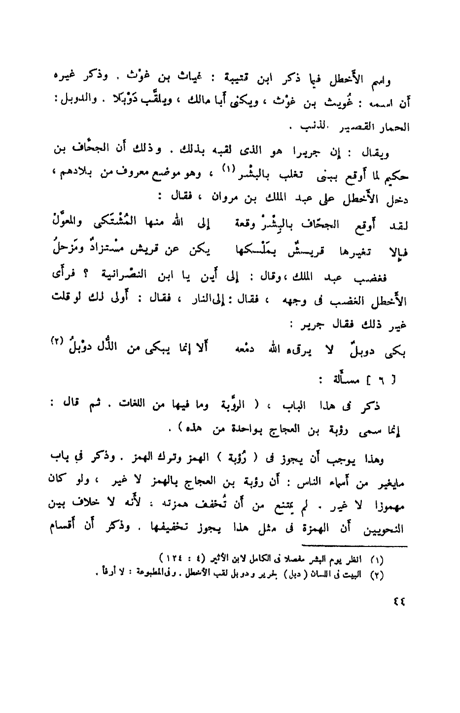 بكى دوبل لا يرقئ الله دمعه ... ألا إنما يبكي من الذل دوبل