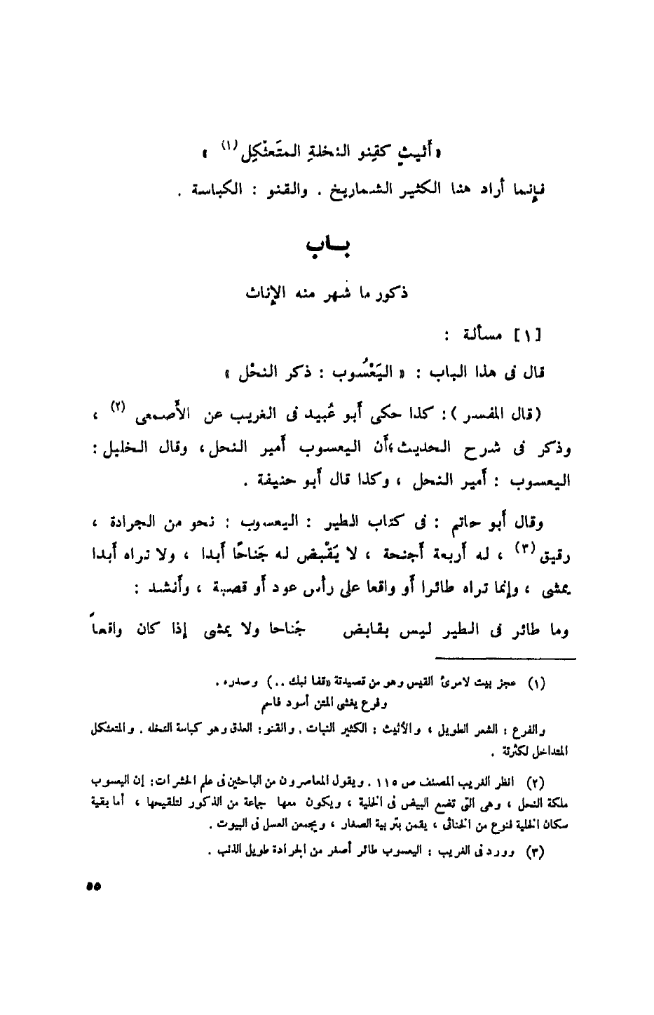 قال في هذا الباب: "اليعسوب: ذكر النحل"
