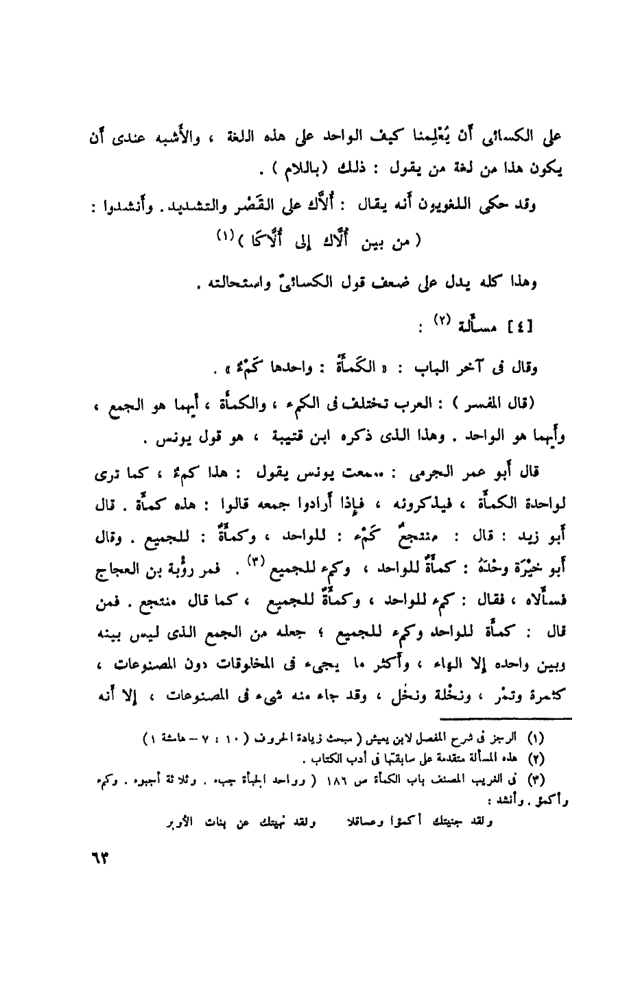 (قال المفسر): العرب تختلف في الكمء، والكمأة، أيهما هو الجمع، وأيهما هو الواحد. وهذا الذي ذكره ابن قتيبة، هو قول يونس.