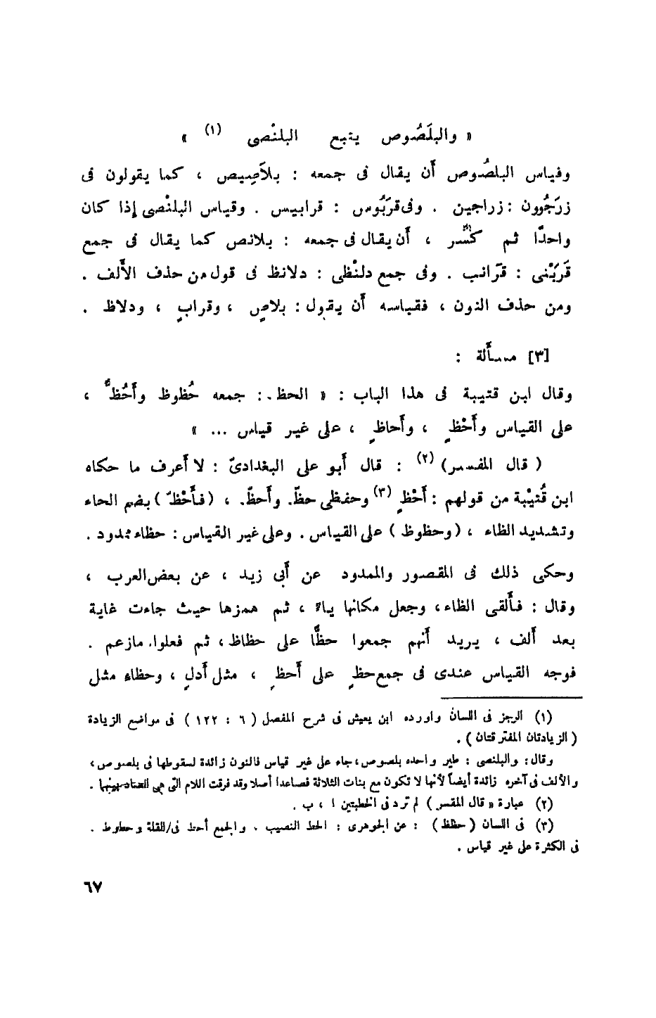وقال ابن قتيبة في هذا الباب: "الحظ: جمعه حظوظ وأحظ، على القياس وأحظ، وأحاظ، على غير قياس .. ".