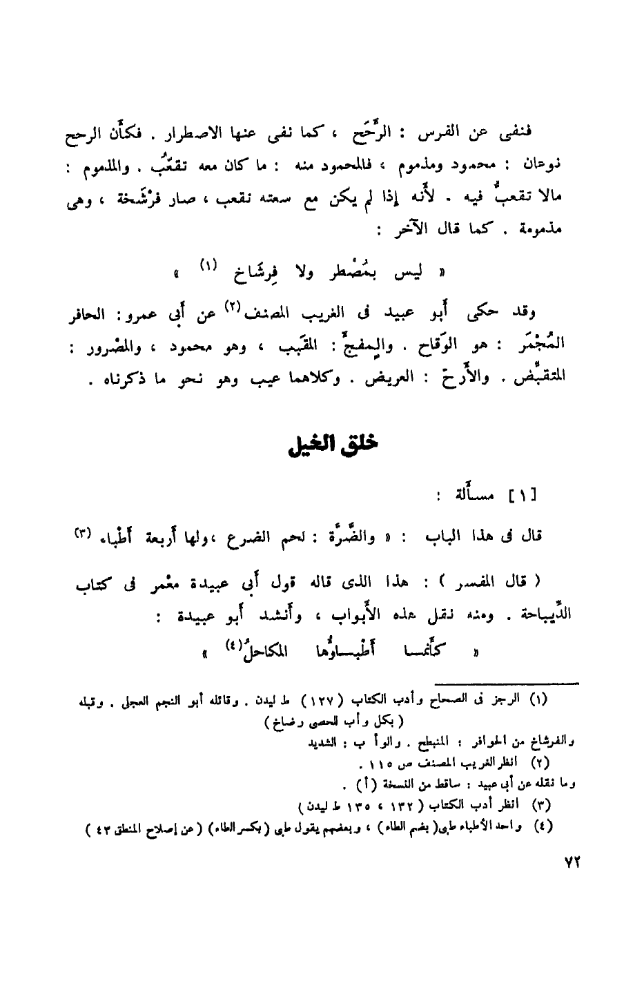 (قال المفسر): هذا الذي قاله قول أبي عبيدة معمر في كتاب الديباجة. ومنه نقل هذه الأبواب، وأنشد أبو عبيدة: