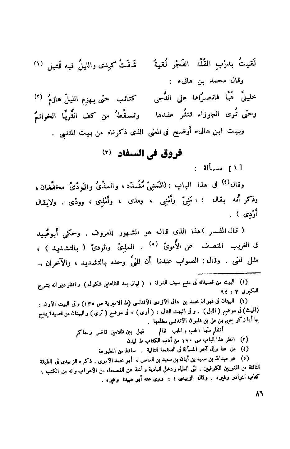 (قال المفسر): هذا الذي قاله هو المشهور المعروف. وحكى أبو عبيد في الغريب المنصف عن الأموي. المذي والودى (بالتشديد)، مثل المنى. وقال: الصواب عندنا أن المنى وحده بالتشديد، والآخران -