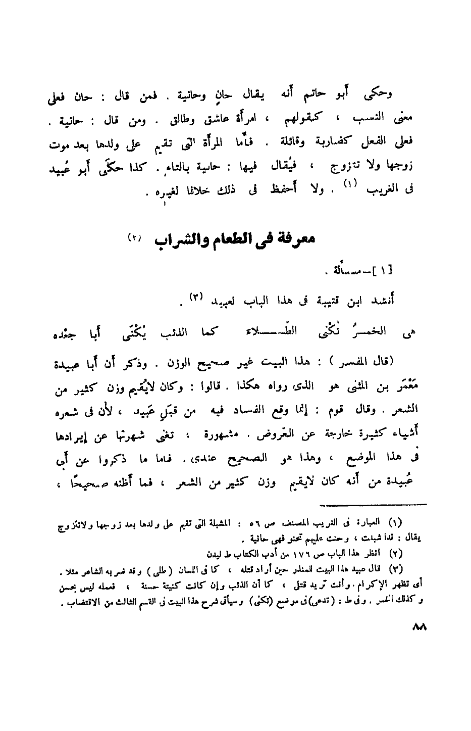 أنشد ابن قتيبة في هذا الباب لعبيد